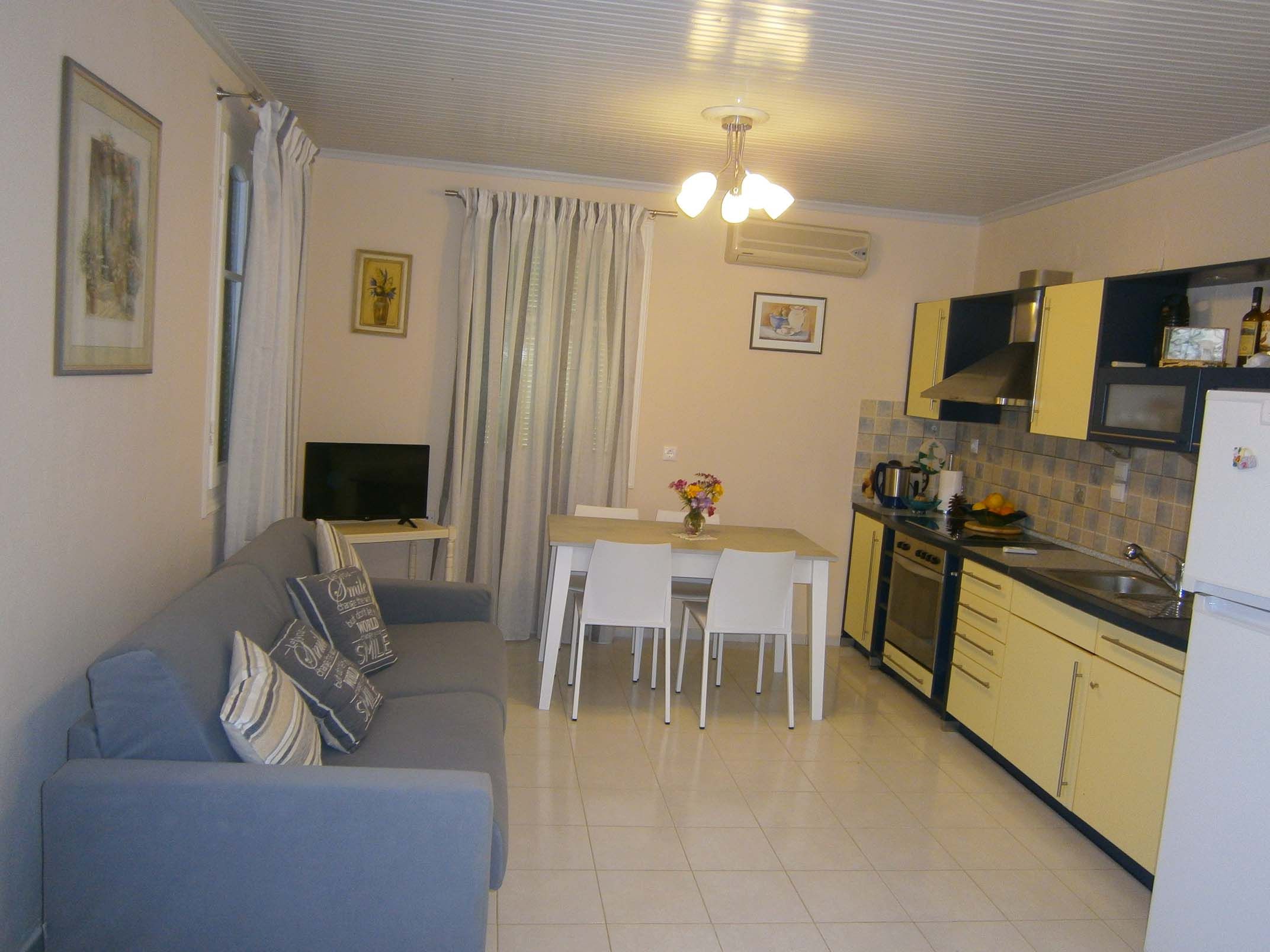 THERE IS ONE DOUBLE-BEDDED ROOM AVAILABLE.FITTED WITH A SITTING AREA WITH TV SCREEN, LARGE KITCHEN AND ALL NECESSARY FACILITIES NEEDED SUCH AS TOASTER, FRIDGE AND TWO AIR-CONDITIONED ROOMS.PLUS, BATHROOM WITH SHOWER, HAIR DRYER AND WASHING MACHINE AVAILABLE.